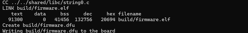 When executing make deploy, DFU-util programmed the firmware to the MCU via USB: