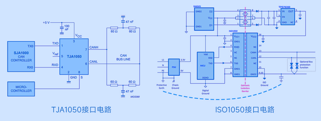 CAN communication interface circuits can be divided into two types: isolated and non-isolated.