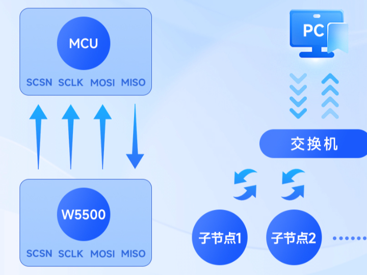 TCP/IP communication can be implemented using Ethernet protocol stack chips with embedded TCP/IP protocol (such as W5500, CH395, WT8266-S3) or by using a switch. Currently, the latter method is commonly used in digital power supplies.