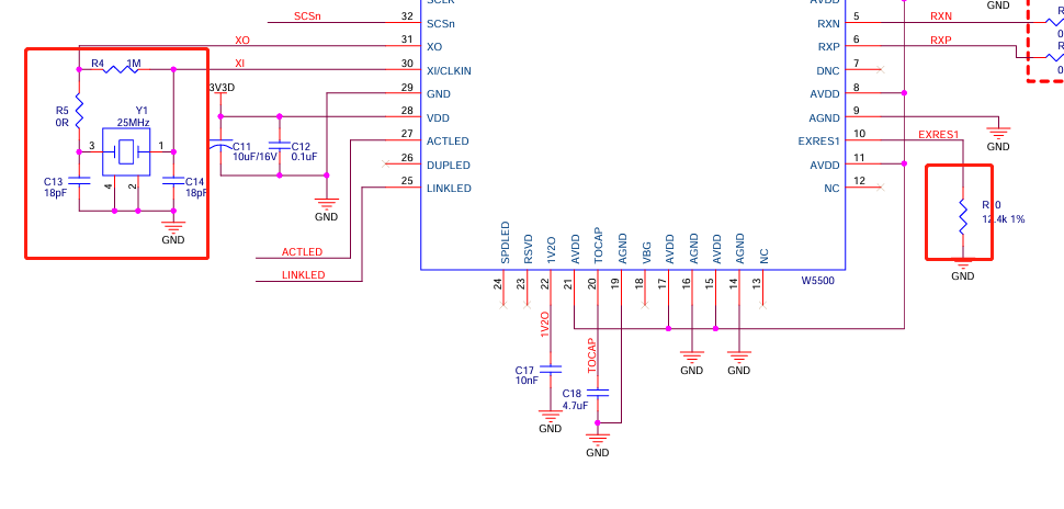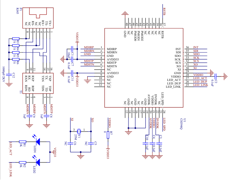 (2) Connect an external capacitor to ground for pin 20 AVDDK and place it close to the chip. It is recommended to change it to 1uF.