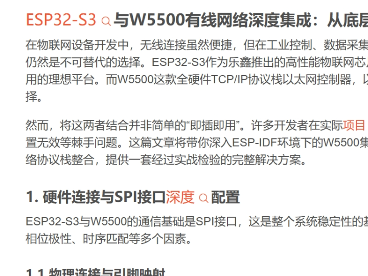 How to Build a Static-IP Ethernet Stack with W5500 on ESP32-S3? This project shows how to integrate a W5500 with ESP32-S3 under ESP-IDF, with emphasis on SPI stability,