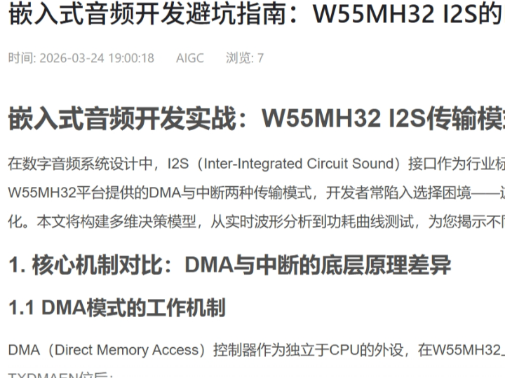 참고한 원문은 W55MH32의 I2S 오디오 출력과 DAC 연결 개념을 설명하지만, 네트워킹까지 통합된 전체 검증 저장소는 제공하지 않습니다.