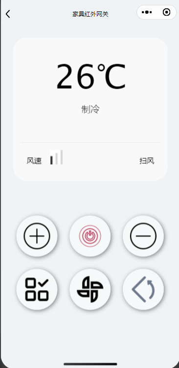 Using mini programs, you can remotely turn on the air conditioner without being physically present. Mini programs don't require downloading or installation; they can be accessed directly through platforms like WeChat. Therefore, I chose the WeChat mini program as the control terminal. The following is an image of the mini program interface:
