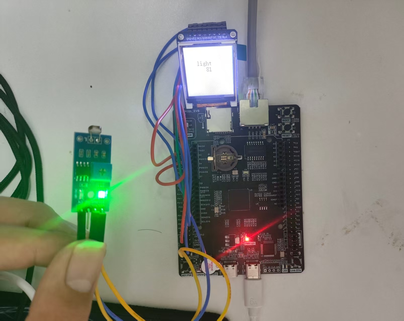 }We can also display the current light level in real time on the LCD screen.