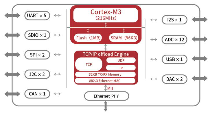 The W55MH32, a highly integrated single-chip solution, precisely addresses these challenges with its built-in 1-channel CAN 2.0B and 8 independent sockets supported by a hardware TCP/IP protocol stack. It not only provides powerful data processing capabilities but also lays a simple yet robust hardware foundation for building highly reliable, real-time multi-terminal data distribution nodes.