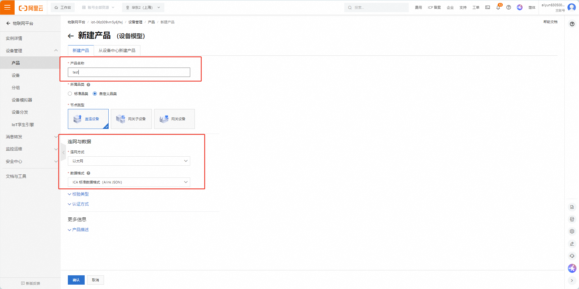 Create a device: Create a device under the product you just created.