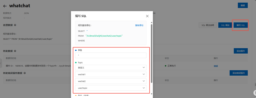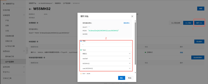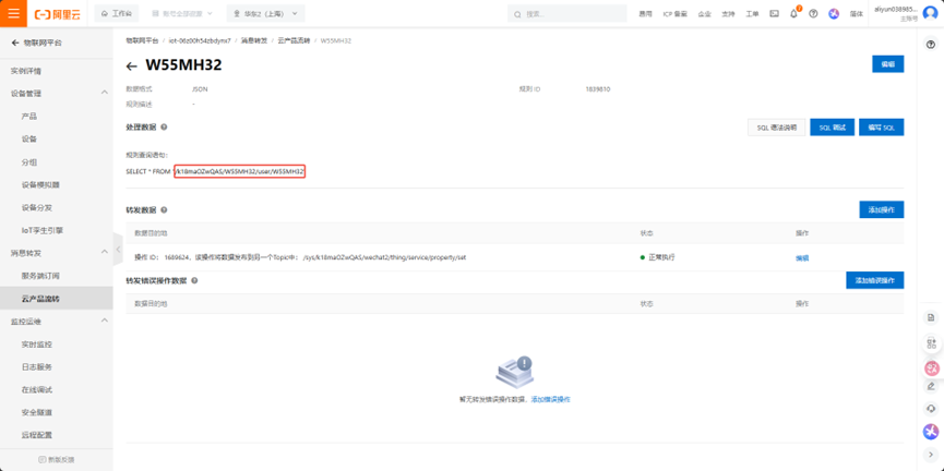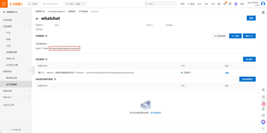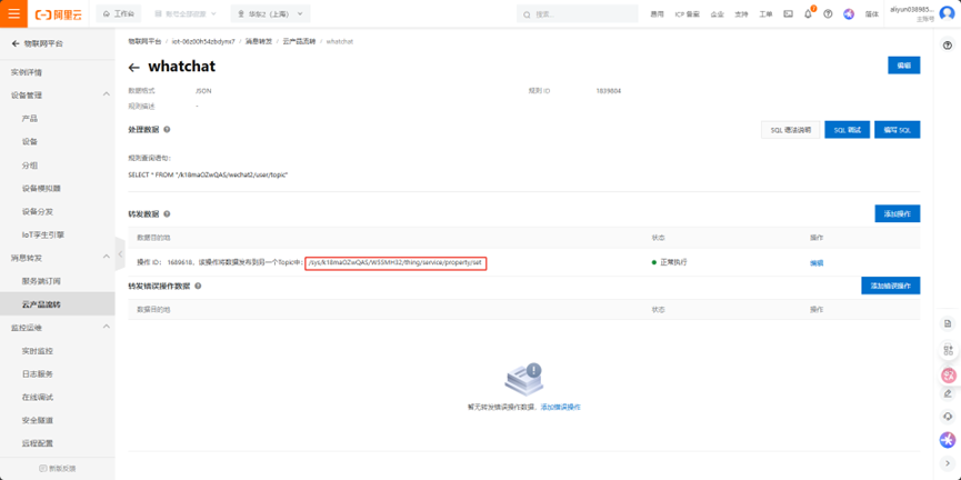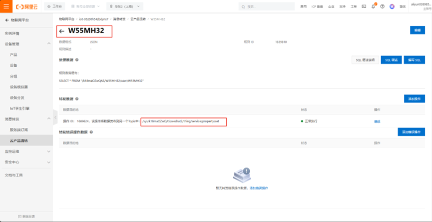 10. Then, following the same method, set up a rule for forwarding commands from the WeChat mini-program.