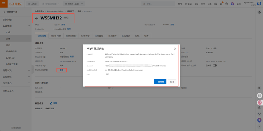 .clientid = "k18maOZwQAS.W55MH32|securemode=2,signmethod=hmacsha256,timestamp=1760498715342|", /Define the client ID/