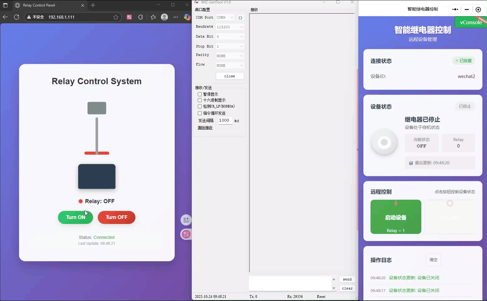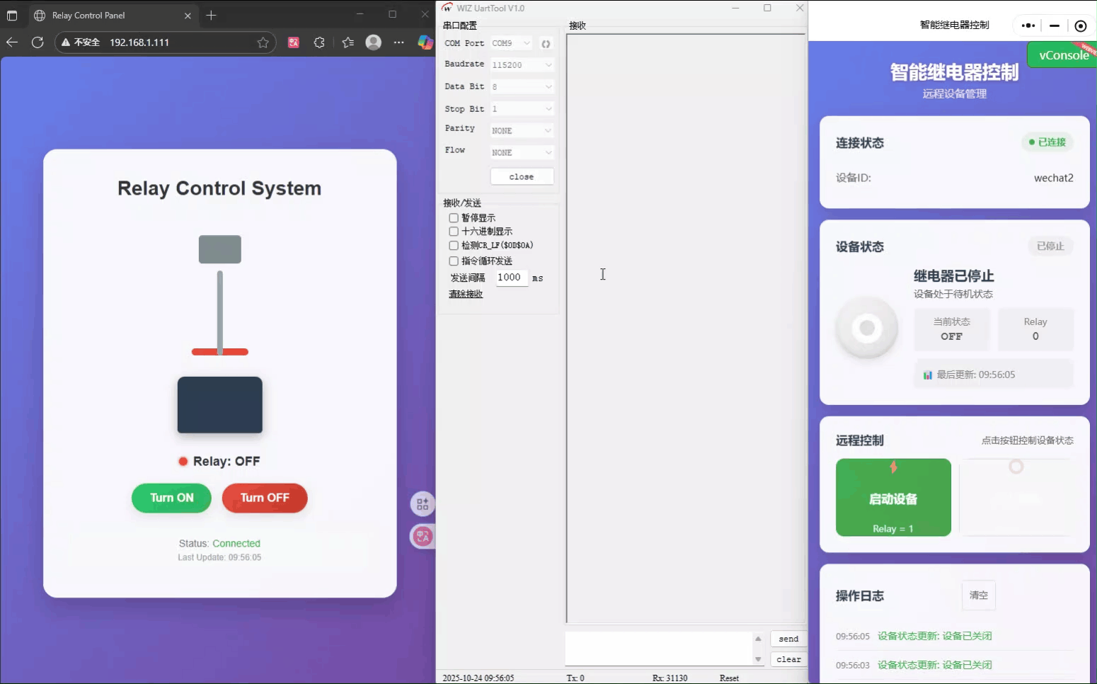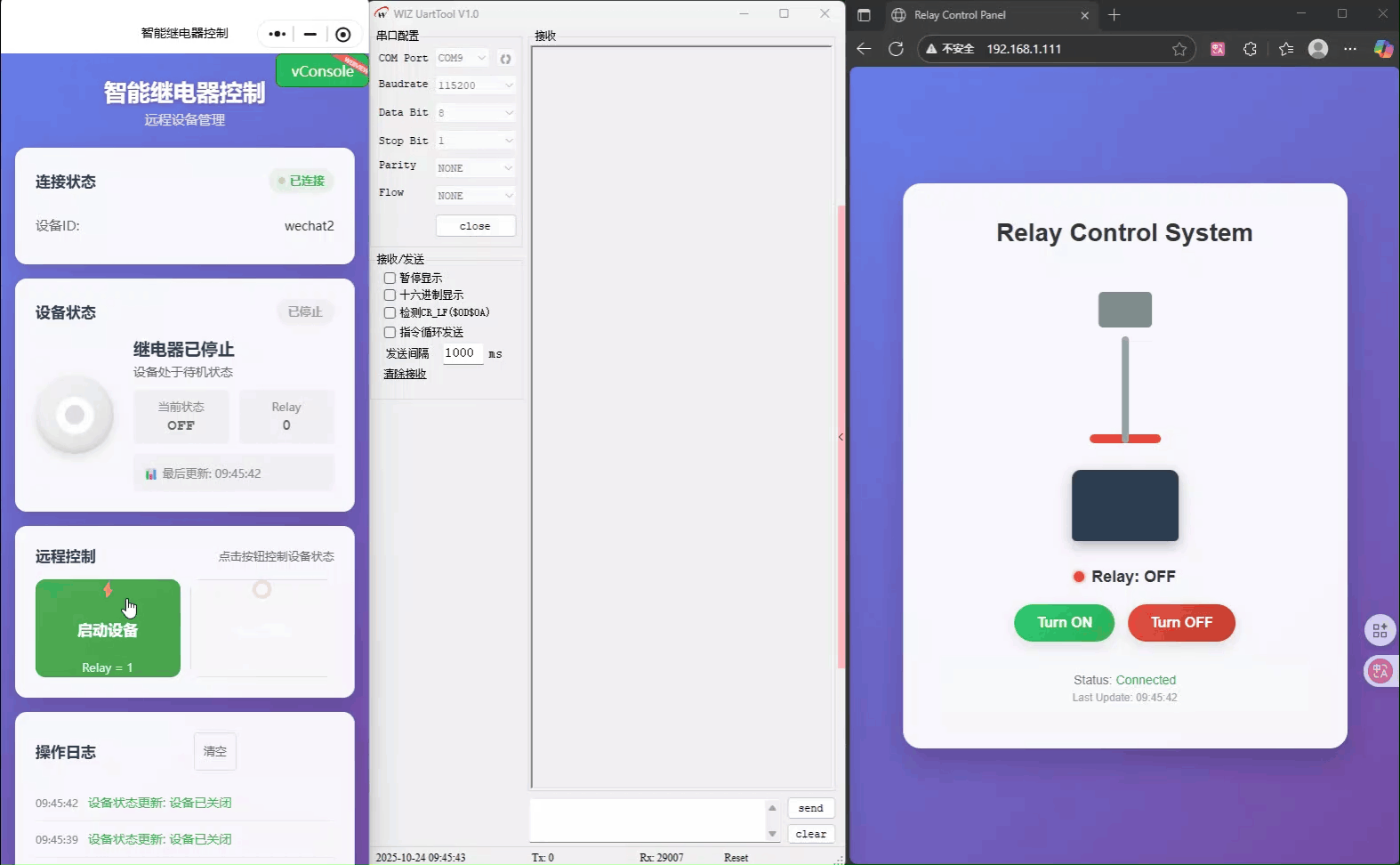 - The action result can be directly confirmed via serial port assistant, web interface, and WeChat mini-program.