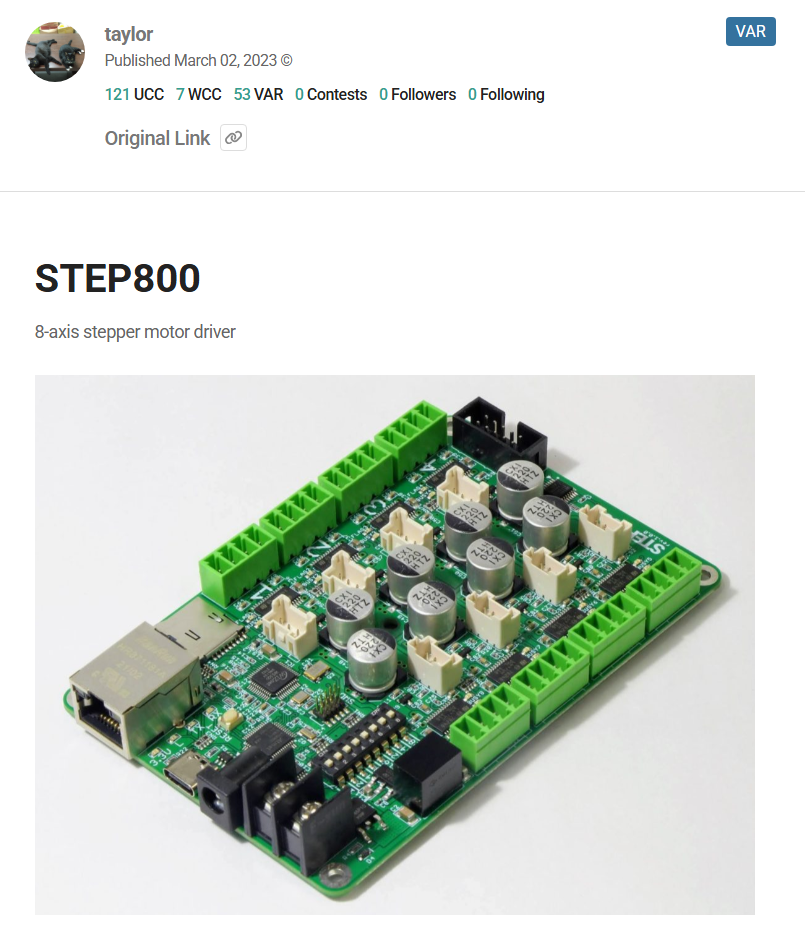 - 1 STEP800 = 8 motors → scale by simply adding boards to the Ethernet hub