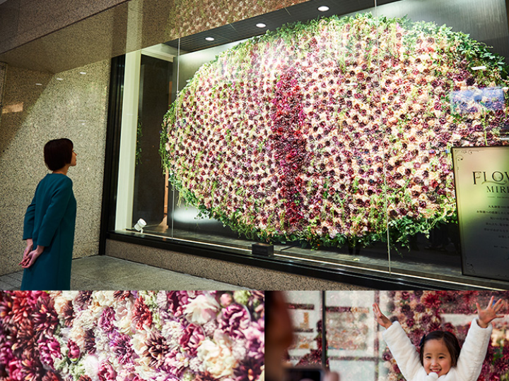 In 2017, Daimaru unveiled a special installation in the shop windows of its Tokyo and Kyoto stores. Planned by dot by dot Inc. with control hardware developed by Ponoor Experiments, Flower Mirror reflected the movements of pedestrians passing by the shop window through 3,000 flowers that opened and closed in real time.