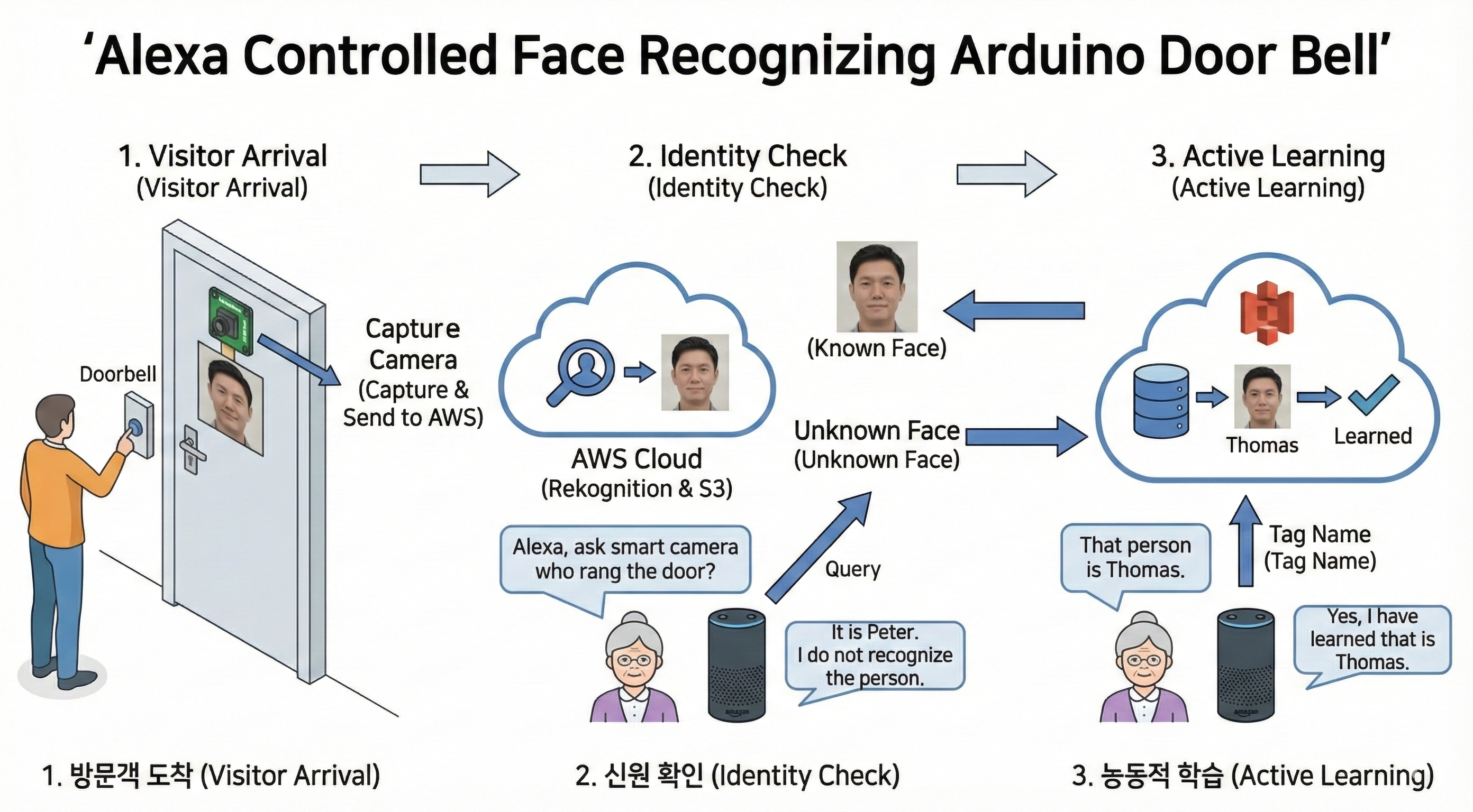 - Active Learning: Grandma tells Alexa, "That person is Thomas." The system then tags the previously 'Unknown' photo with the name 'Thomas' in the database.