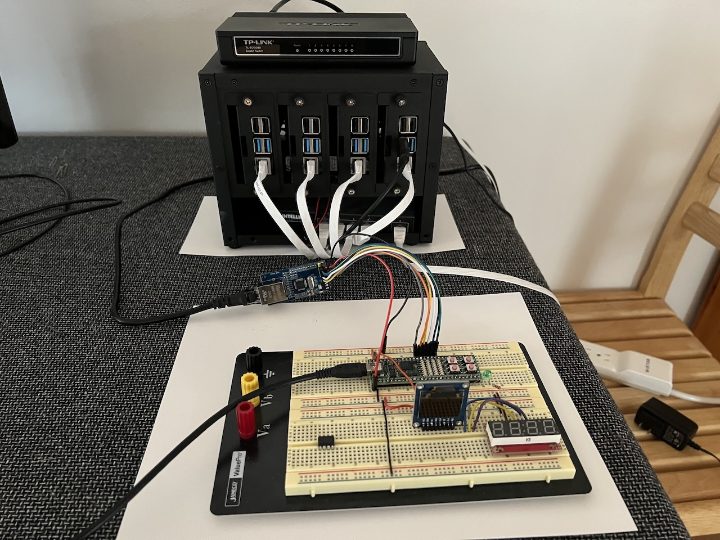 - Implemented using four Raspberry Pi 4 boards