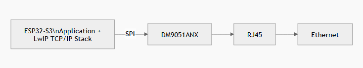 In the original tests, DM9051ANX and W5500 were compared under the same ESP32-S3 + LwIP architecture. Therefore, the results represent a comparison of SPI Ethernet controllers, not TCP/IP offloading solutions.