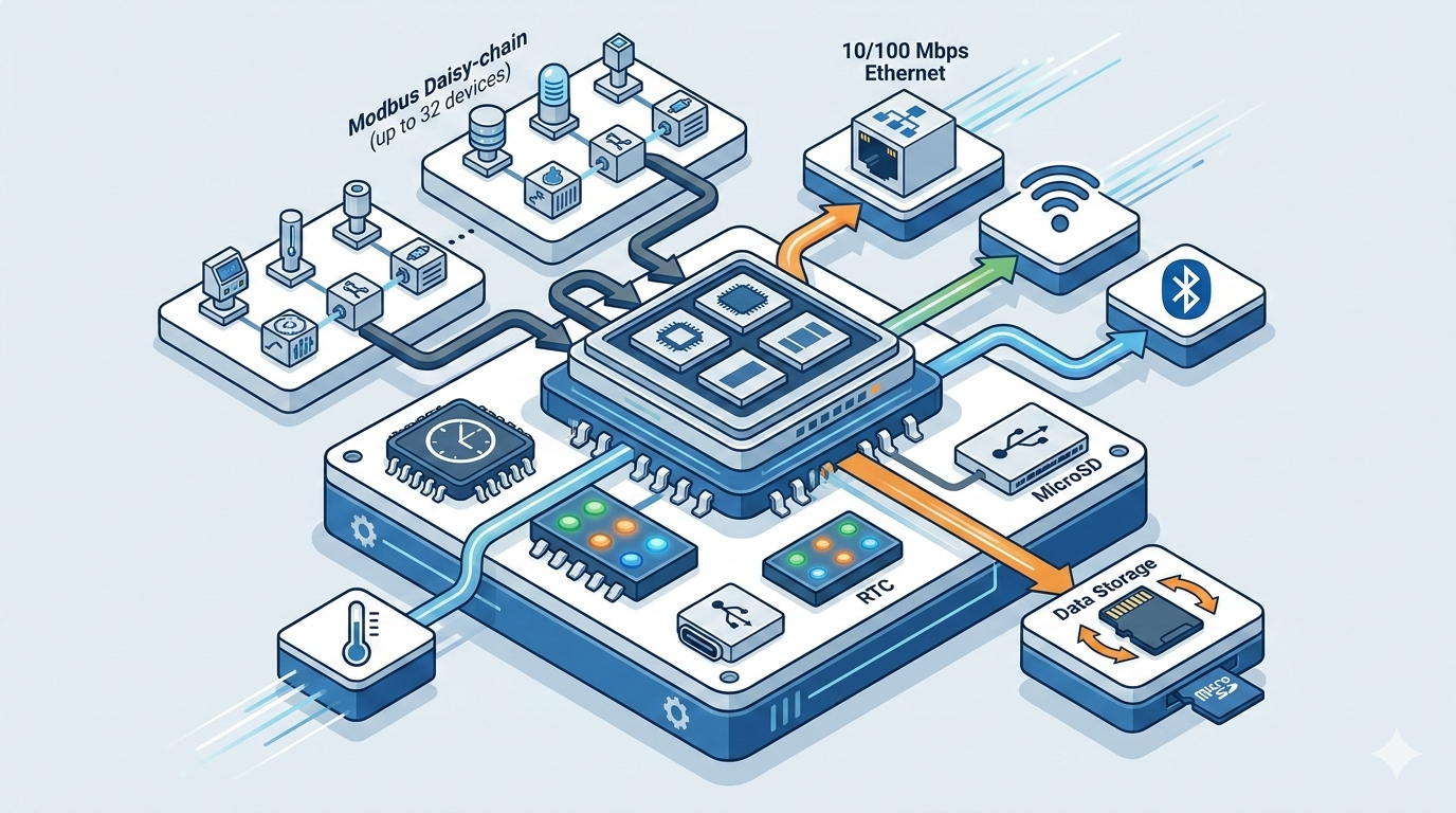 Through this protocol conversion capability, Modbus data can be integrated with cloud platforms, monitoring dashboards, and analytics systems.