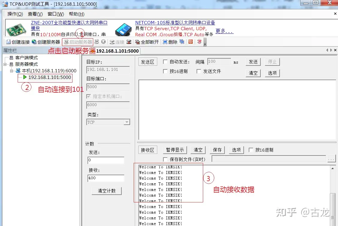 - 点击上图的启动服务器选项,就会出现下面通信界面: