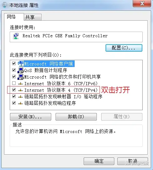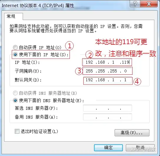 更改PC的网络参数以满足实验要求(示例在win7系统下)