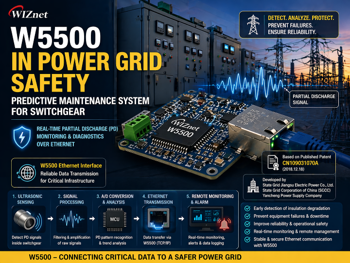 By combining partial discharge detection, signal analysis, and Ethernet-based remote transmission, this system provides a strong example of how WIZnet technology can be extended into industrial monitoring and infrastructure safety.