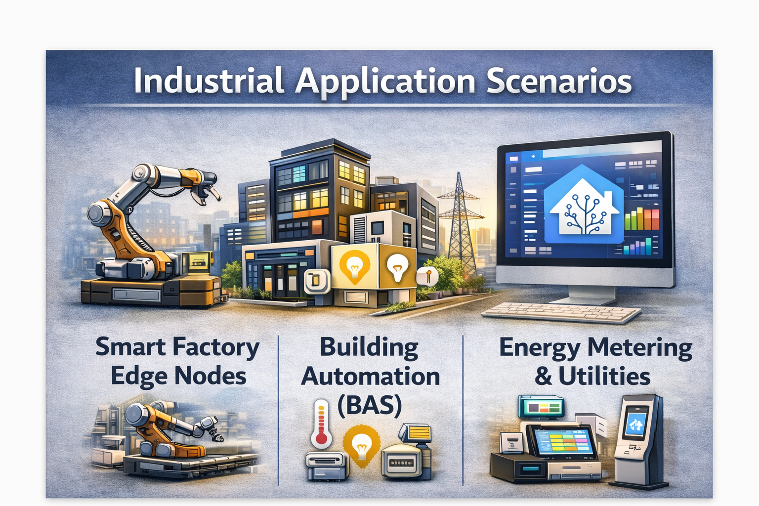 A: Always-on, field deployments: factories, buildings, metering sites, kiosks, and retail infrastructure.