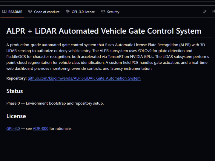 ALPR + LiDAR Automated Vehicle Gate Control System ALPR + LiDAR Automated Vehicle Gate Control System COMPONENTS PROJECT DESCRIPTION Documents Comments Write
