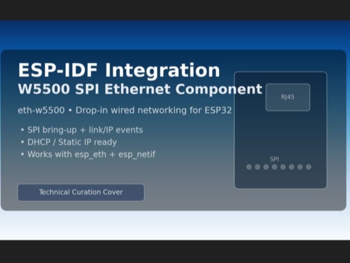 The eth-w5500 project packages WIZnet’s W5500 (SPI Ethernet) into an ESP-IDF-friendly component with a small, struct-based API