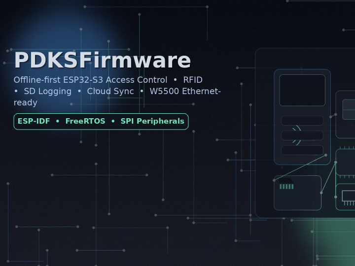 PDKSFirmware is an ESP32-S3 access-control firmware that authenticates RFID cards, writes append-only logs to FAT32 on SD, and syncs events to the cloud