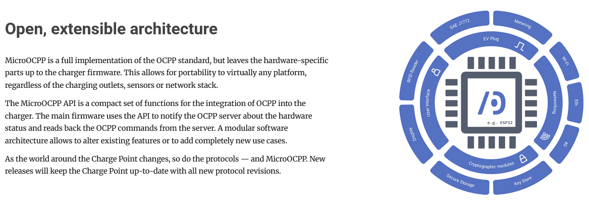 MicroOcpp is an open-source OCPP client (OCPP 1.6 + basic OCPP 2.0.1 use cases) built for microcontrollers and embedded Linux
