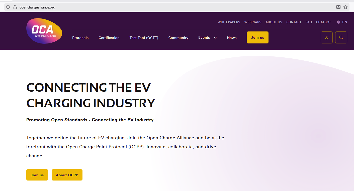 Standards status note: In October 2024, OCA announced that OCPP 2.0.1 Edition 3 had been approved by the IEC as IEC 63584, marking a major milestone toward formal international standardization.